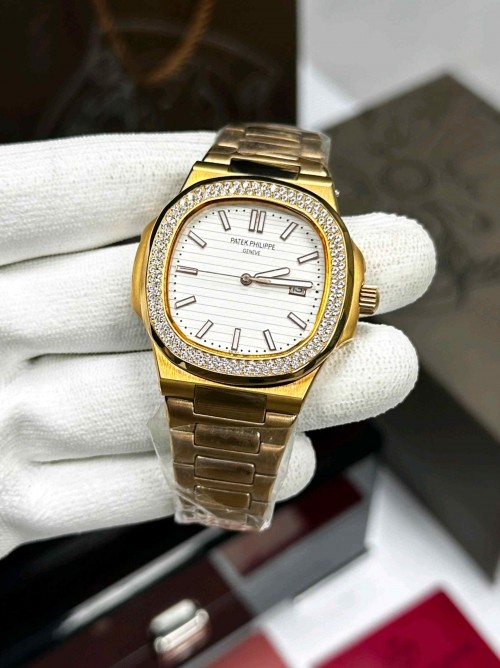 PATEK_ PHILLIPE NAUTILUS DIAMOND BEZEL ROSE WHITE